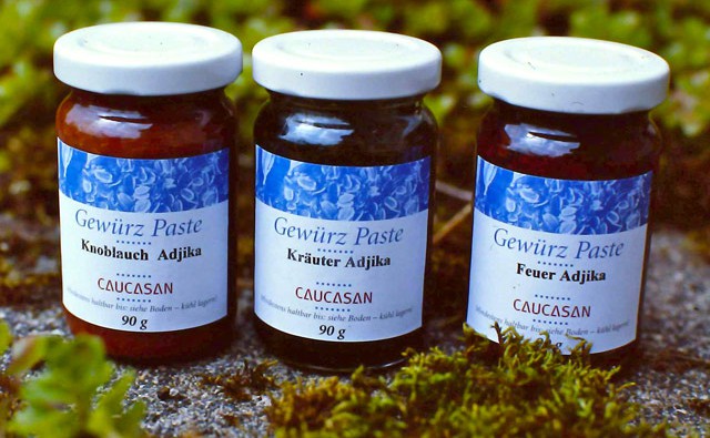 Betrachtet man die Zusammensetzung dieser unterschiedlichen Adjikas, so erkennt man sofort, dass Adjikas nicht nur würzen, sondern darüber hinaus für die typischen Speisen der jeweiligen Region ganz wichtige Begleiter sind. Sie sind nämlich direkte Verdauungshilfen! Hier bestätigt sich unser CAUCASAN-Motto: „Gesund und Lecker“