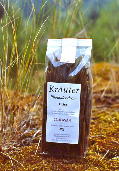 In Georgien gilt der Tee aus den jungen, getrockneten Frühjahrsblättern des Rhododendron Caucasicum als ein ausgleichendes Tonikum bei Blutdruck- und Herzproblemen. Zahlreiche weitere Heilkräfte werden ihm nachgesagt. Einige wurden in Moskau in verschiedenen klinischen Studien überprüft. Wir bemühen uns um weitere Informationen und werden darüber informieren.
